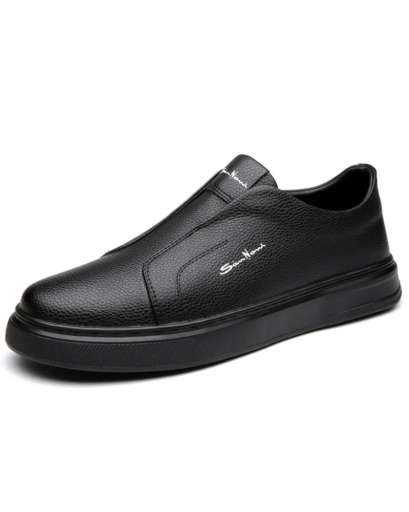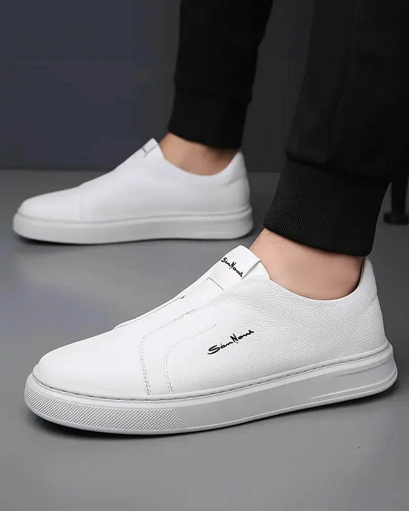 פרשנות מודרנית של סניקרס קלאסיות עם עליון עור חלק ואיכותי, פרטים עדינים של תפרים ועיצוב ללא שרוכים.