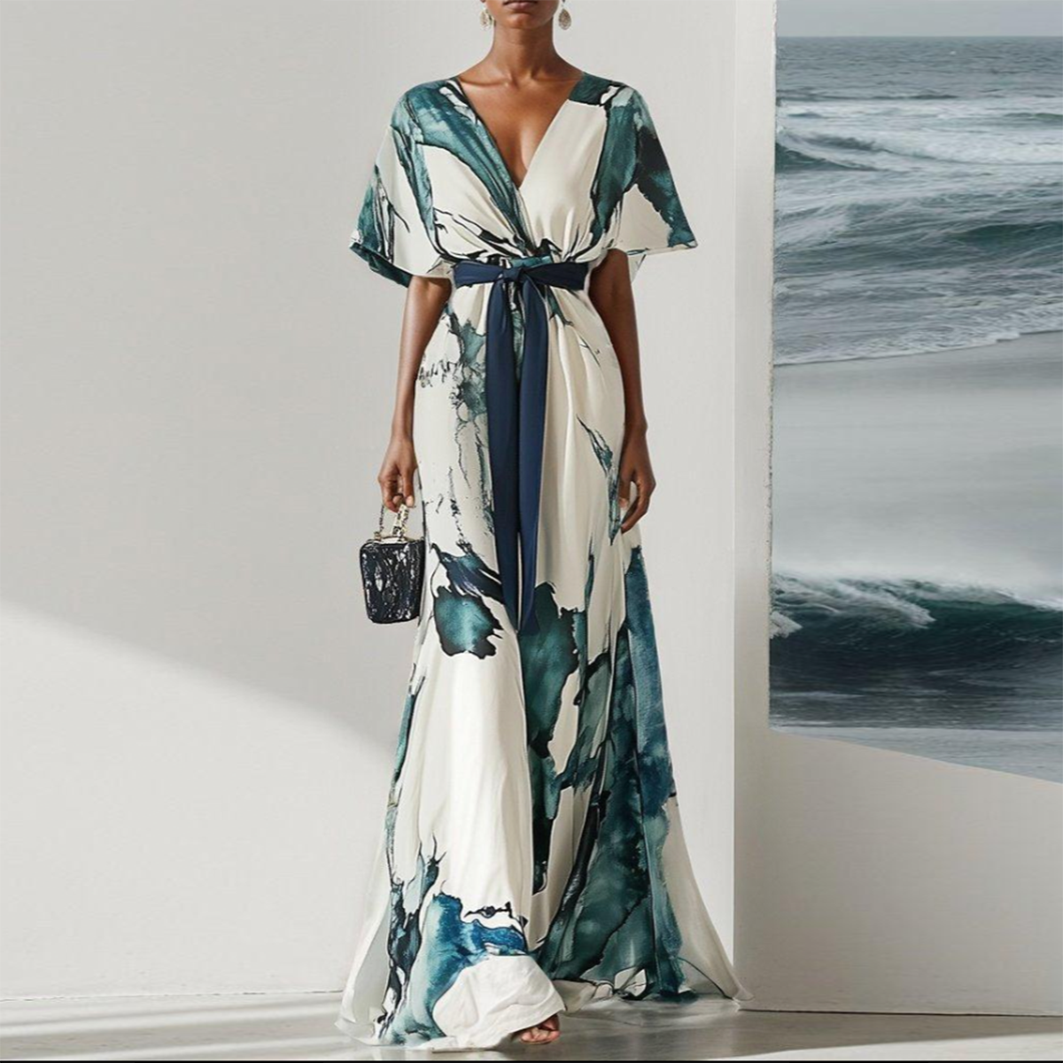 שמלות המקסי עם צווארון V קצרות שרוול זו היא התוספת המושלמת לארון הבגדים שלך. עשויה בעיצוב צווארון V מחמיא ושרוולים קצרים, שמלה זו היא גם אופנתית וגם נוחה. האורך המקסי מוסיף אלגנטיות, מה שהופך אותה לאופציה רב-תכליתית לכל אירוע. שדרגו את המראה שלכם עם פריט חובה זה.